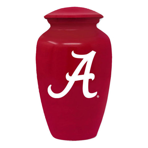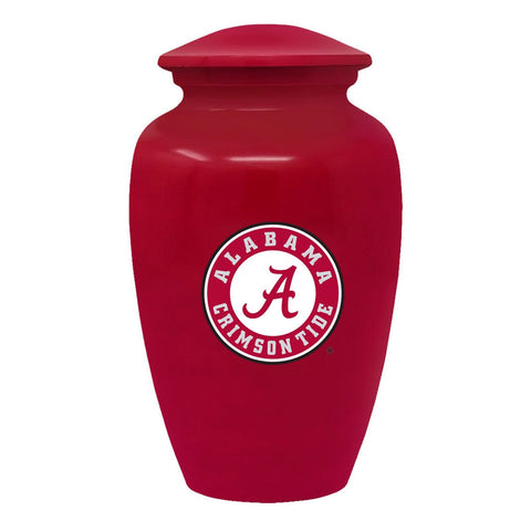 The Alabama Crimson Tide Cremation Urn is crafted of durable metal and lovingly painted and finished with a perfect lacquer coating. The bold school logo on a brilliant background will evoke all your special memories as you display the colors of your loved one’s favorite school. The urn proudly displays the school symbol on a brilliant background and is true to the spirit of University of Alabama. The Alabama Crimson Tide Cremation Urn is the perfect final resting place for someone who cheered with pride for their mighty Crimson Tide.
