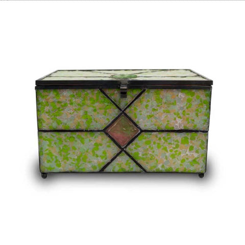Our stained glass memory chest memorial urns are a unique way to store a keepsake urn with remains, mementos, or other special treasures. These boxes are lovingly handcrafted of hand-mixed glass pieces that are gently soldered to a metal frame.  Available in three colors. These delicate yet sturdy chests create a special storage place for whatever you choose.  Whichever of these unique boxes you choose, your memory chest is sure to become a treasured family heirloom.