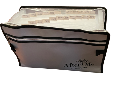 Your passing will leave your family and friends with the difficult task of making your funeral arrangements, celebrating your life, and handling numerous post-funeral matters. The After Me organizer helps make that job easier. The system enables you to gather, organize, and store your important information and documents. You’ll be able to leave behind a plan for your funeral or memorial service, essential documents to finalize your affairs, and information to help commemorate your life.
