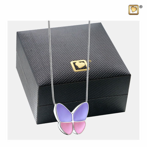 The Wings of Hope Butterfly Keepsake Pendant is available in three color variations: Pearl Lavender and Pink, Pearl Blue, and Pearl White. The surface is protected by GlossCoat™ technology. Handcrafted with Love by LoveUrns®.