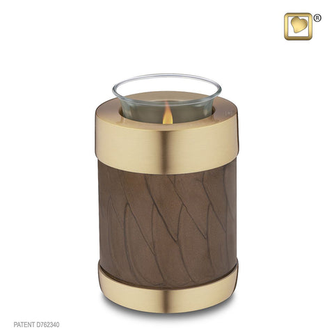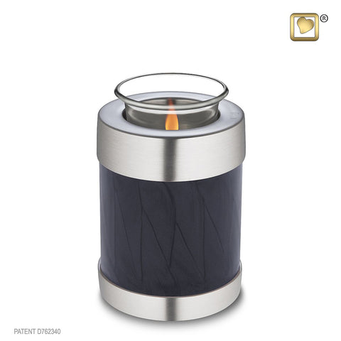 Handcrafted of solid brass and lovingly enamel coated to create a lush pearlescent finish, the Pearl Tealight is a lovely way to honor your loved one. The interior urn contains up to 28 cubic inches of remains which makes it perfect for families who want to share.
