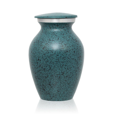 This classic keepsake urn is lovingly crafted of high quality alloy and accented with a lightly textured faux granite finish. A pewter band accents the smoothly polished surface to create the perfect tribute to your loved one. The top features a threaded lid to ensure a secure closure. This keepsake urn is perfect for display in the home.